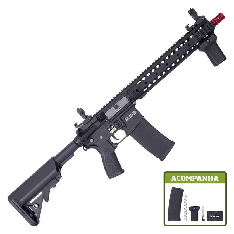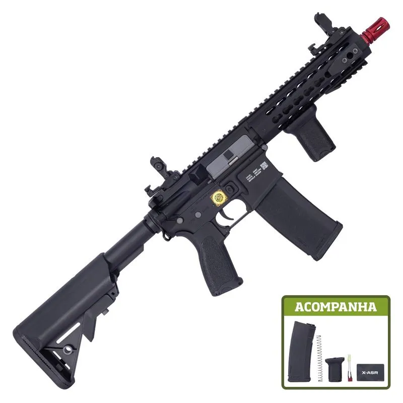 Compacta, leve e extremamente funcional, a SA-F02 FLEX Black é perfeita para ambientes urbanos e combates em curta distância. Dessa forma, o design clássico M4 com cano mais curto oferece ótima mobilidade e precisão.